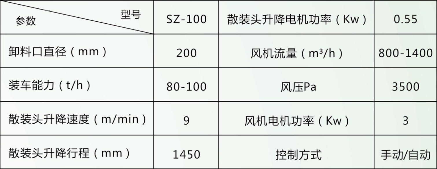 本設(shè)備是與卸料器,輸送斜槽,振動(dòng)料斗等給料設(shè)備配套的全自動(dòng)散料裝車(chē)、裝船設(shè)備,配有全自動(dòng)控制系統(tǒng),工作全程處于封閉狀態(tài),有效的防止粉塵外溢。