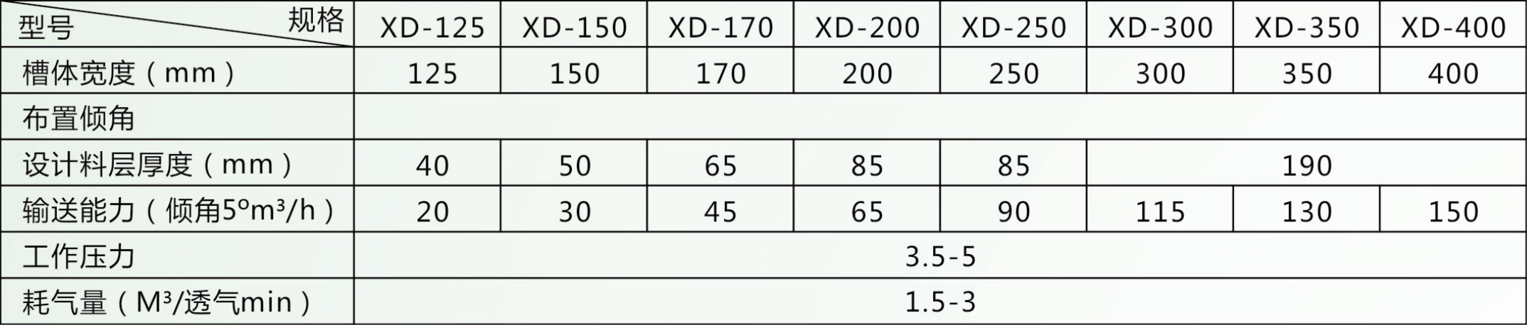 本設(shè)備用于輸送干燥粉料,結(jié)構(gòu)上采用瘦高型,供氣系統(tǒng)采取分段供氣,確保輸送穩(wěn)定可靠,透氣層選用新五層帆布輸送板,用硅橡膠密封,有效地防止漏氣、漏粉。