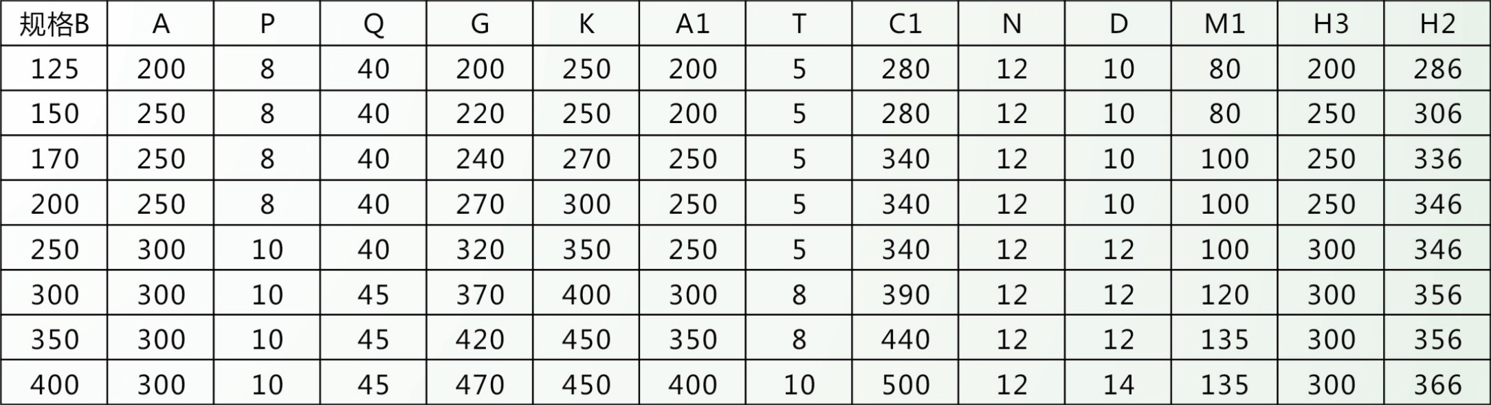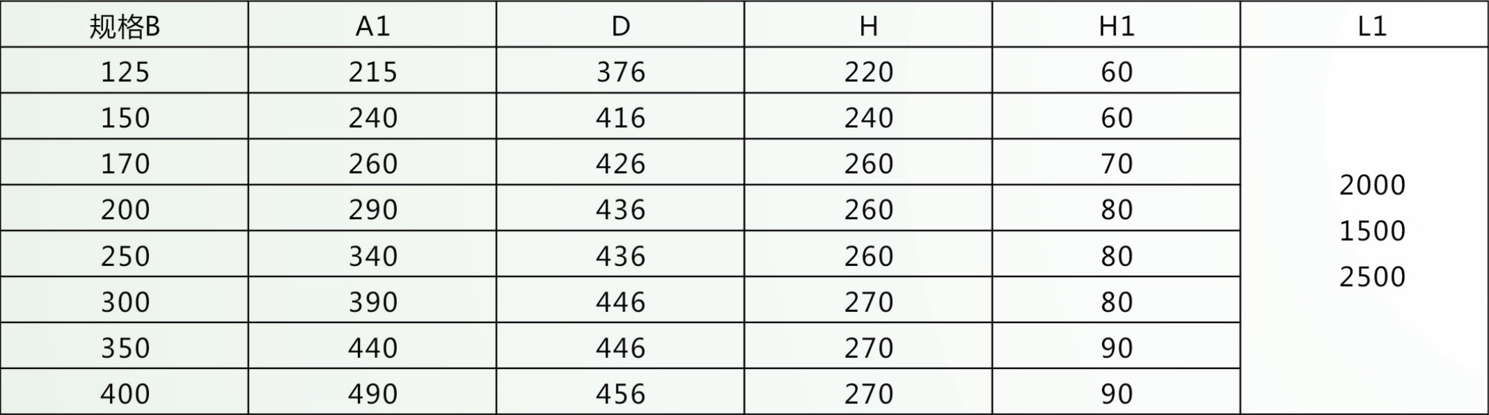 槽體尺寸表: