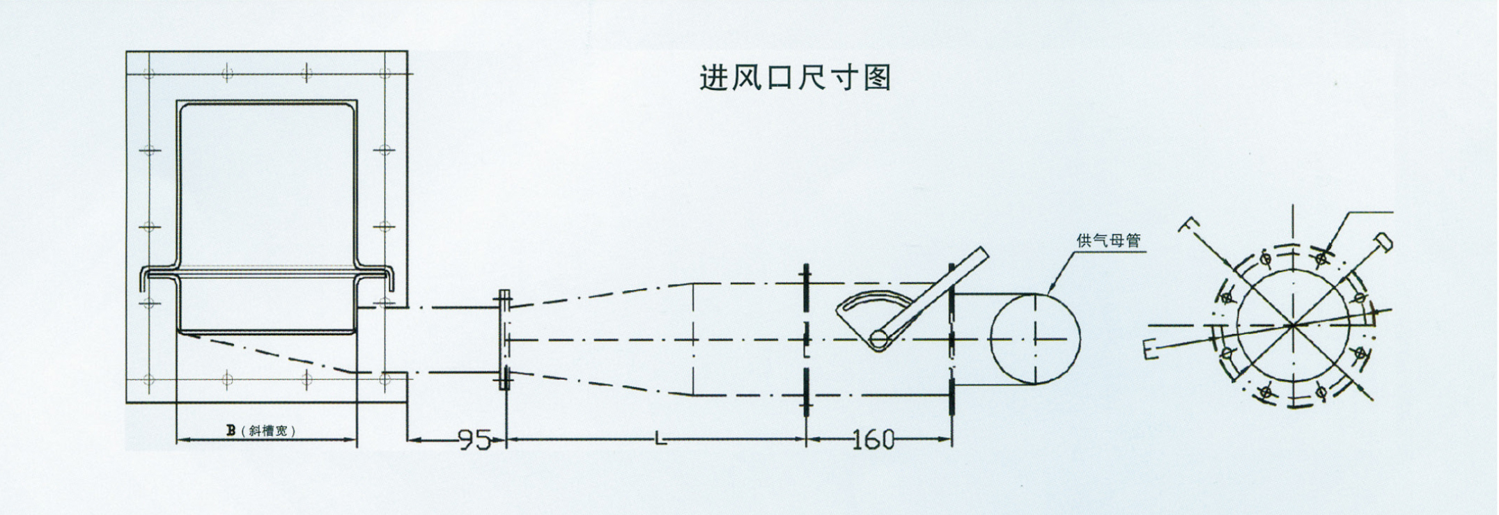 斜槽進風(fēng)口安裝尺寸圖: