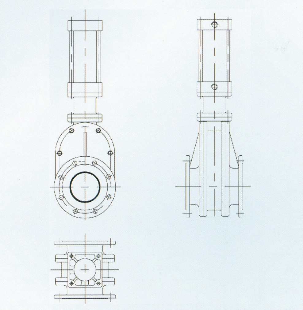 氣動(dòng)出料閥設(shè)置與發(fā)送器物料出口處,發(fā)送器輸送時(shí),該閥打開發(fā)送器輸送結(jié)束時(shí),詼閥關(guān)閉。工作時(shí),氣缸通過手帶動(dòng)閥芯做回轉(zhuǎn)運(yùn)動(dòng),從而打開或關(guān)閉閥門。